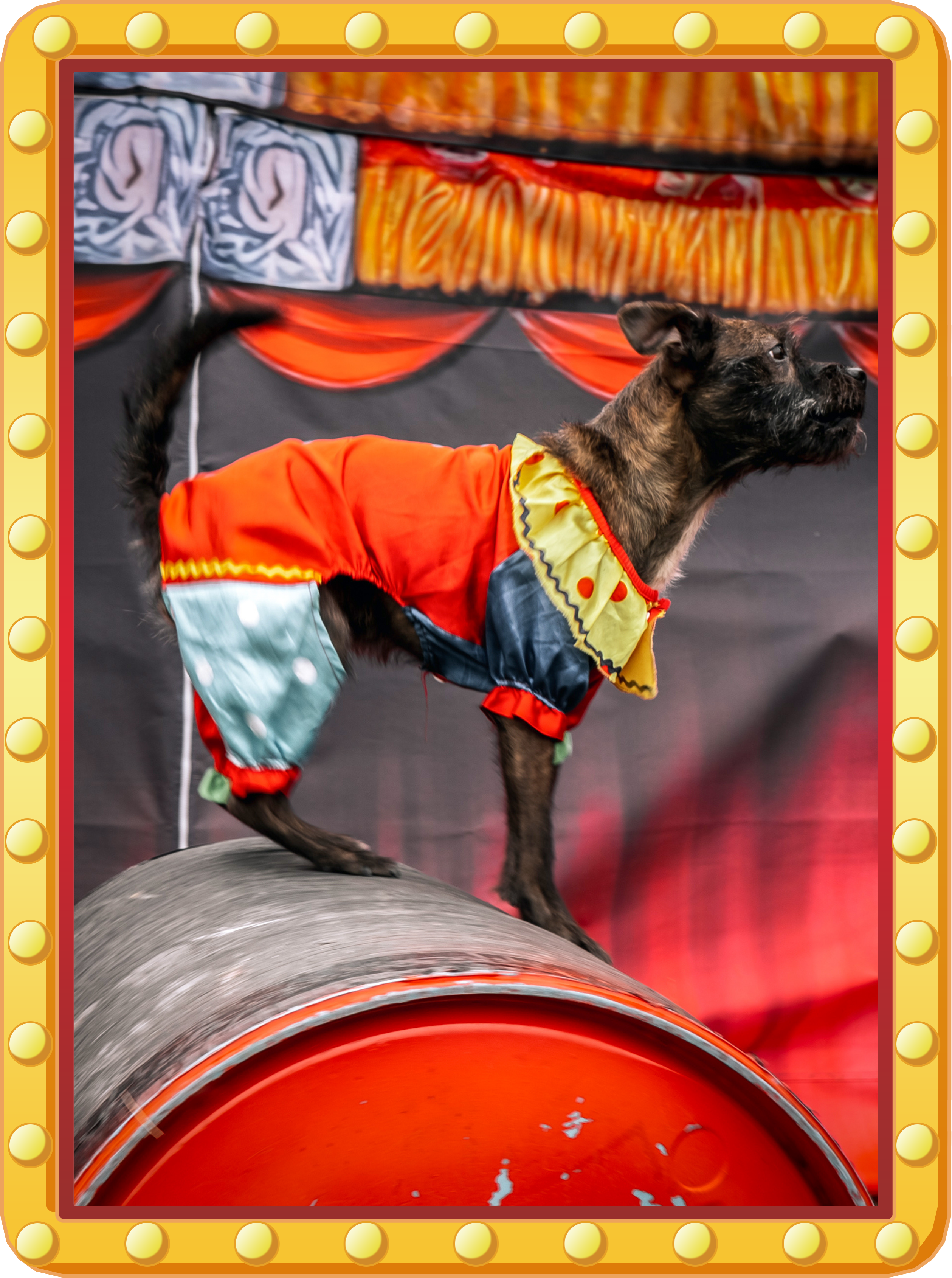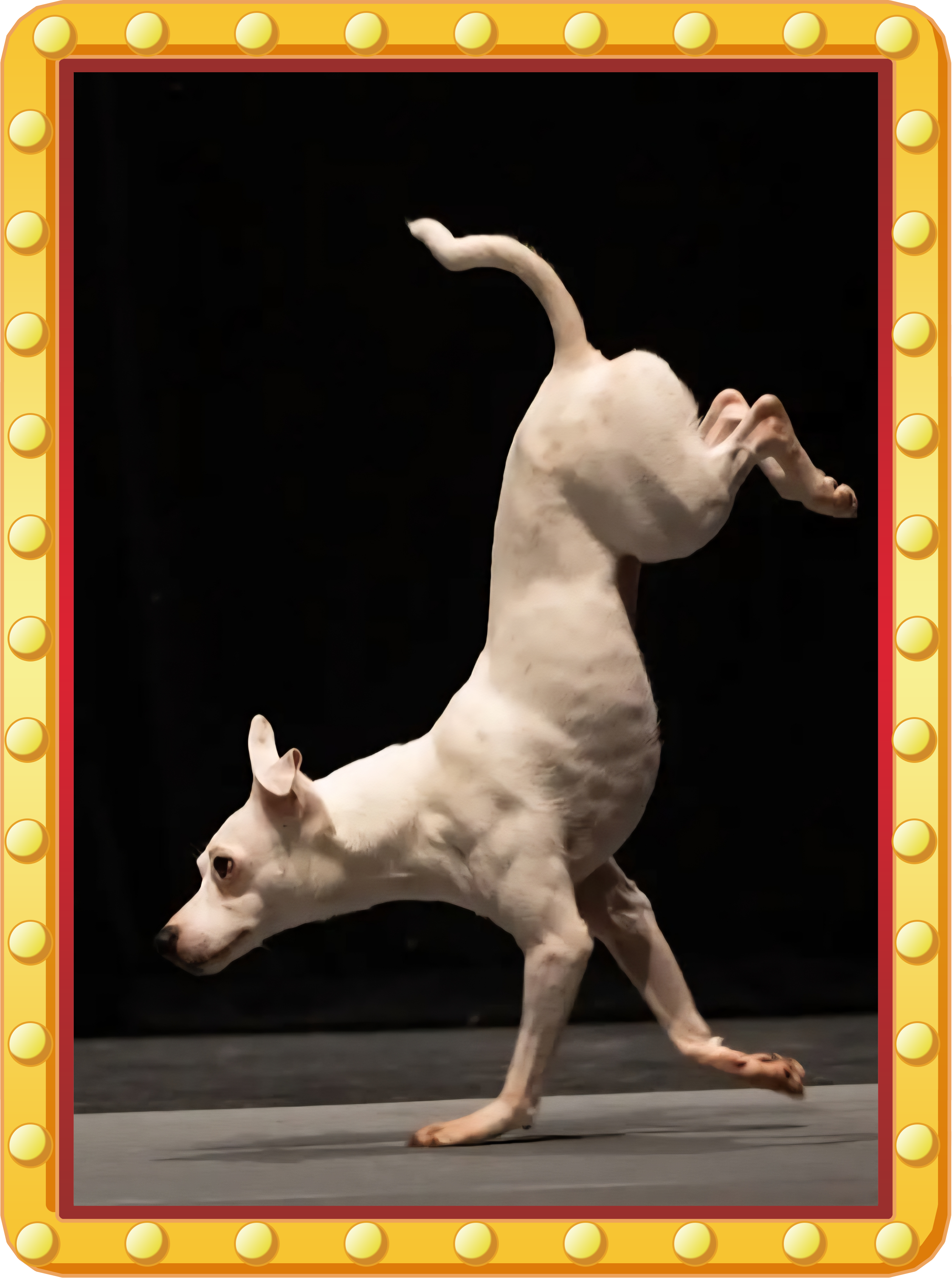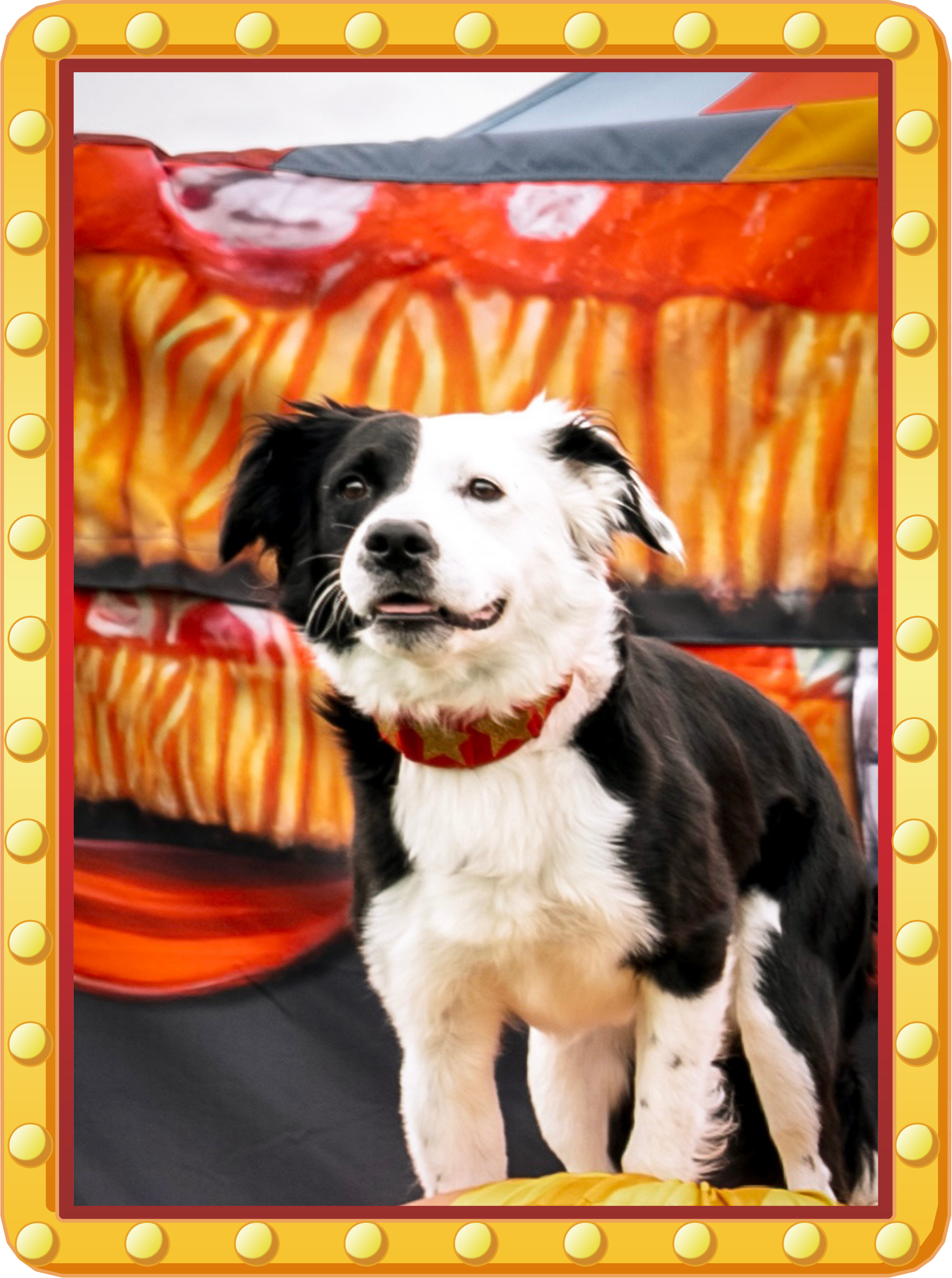 From daring trick dogs to their talented trainers, our four-legged performers bring the Canine Circus to life. With more than 20 amazing dogs, each show is a celebration of talent, teamwork, & a little bit of doggy magic. Click a photo to learn each performer’s story.