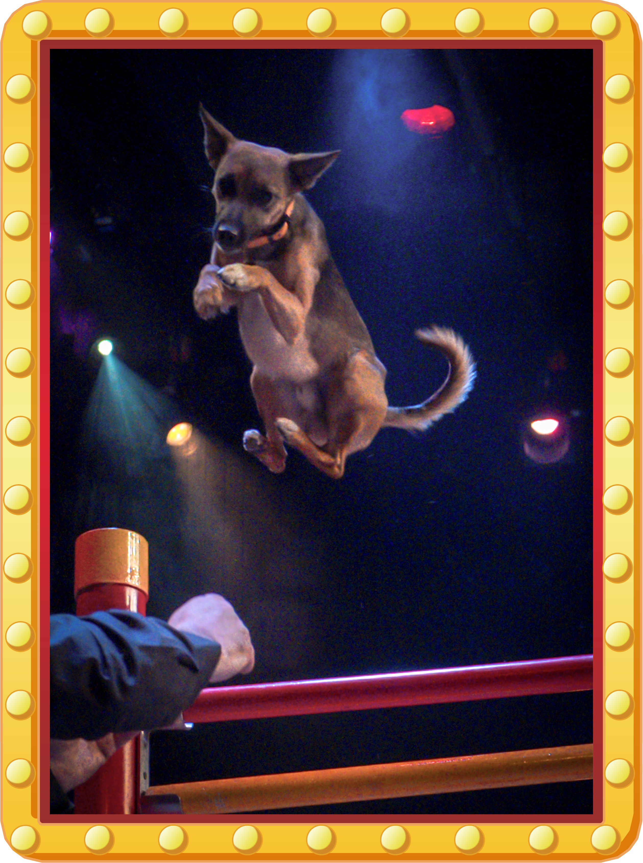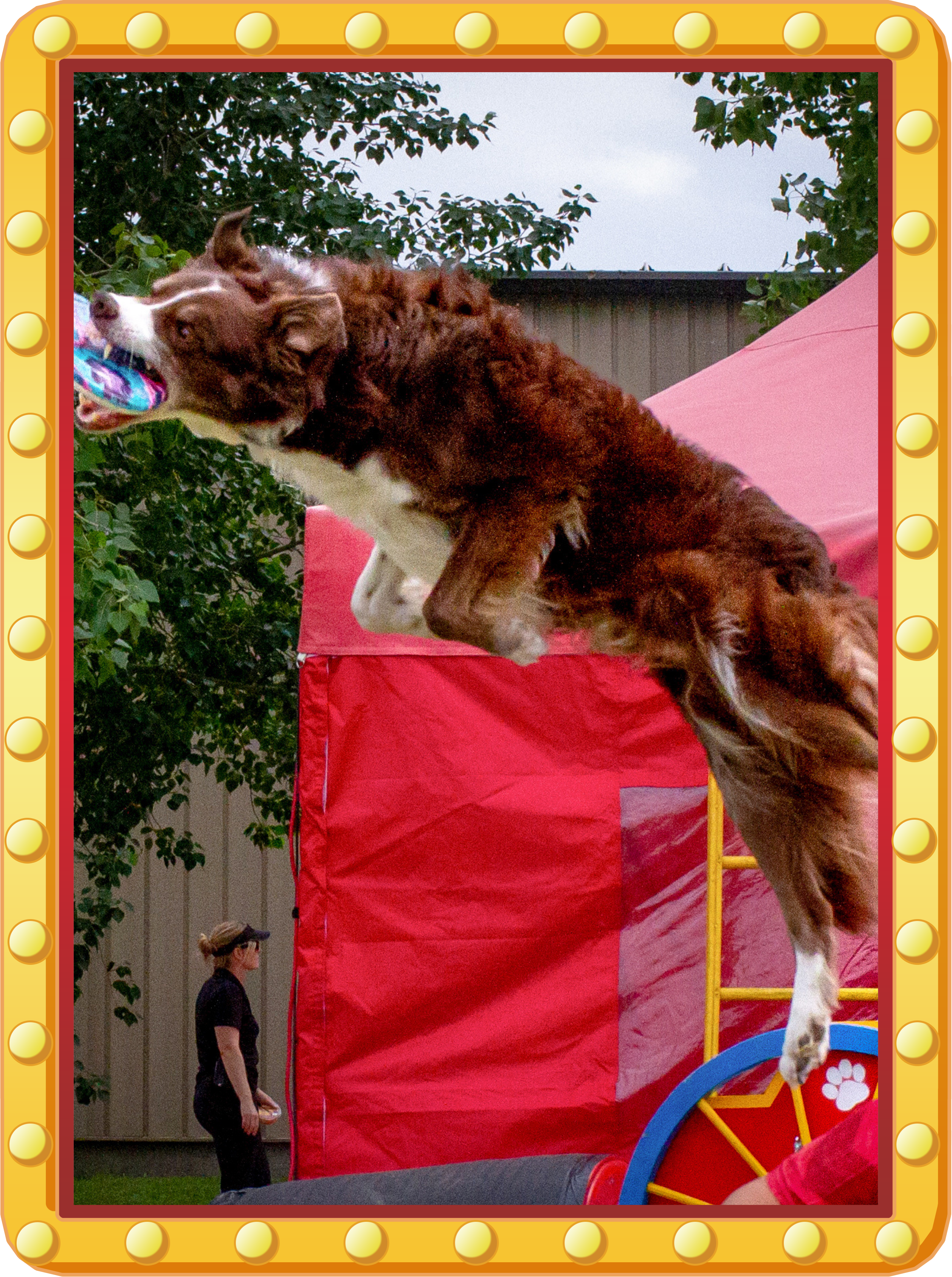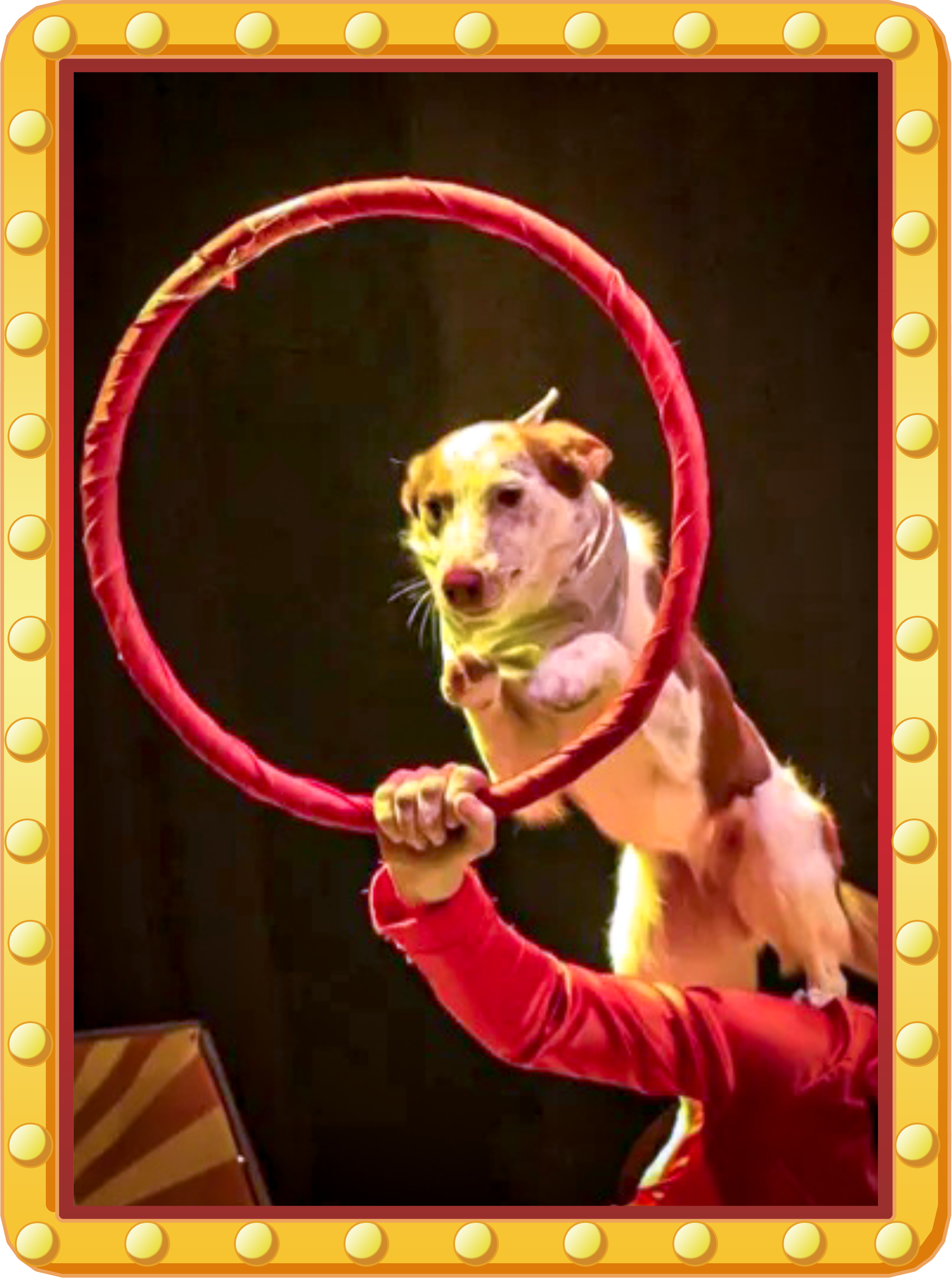 From daring trick dogs to their talented trainers, our four-legged performers bring the Canine Circus to life. With more than 20 amazing dogs, each show is a celebration of talent, teamwork, & a little bit of doggy magic. Click a photo to learn each performer’s story.